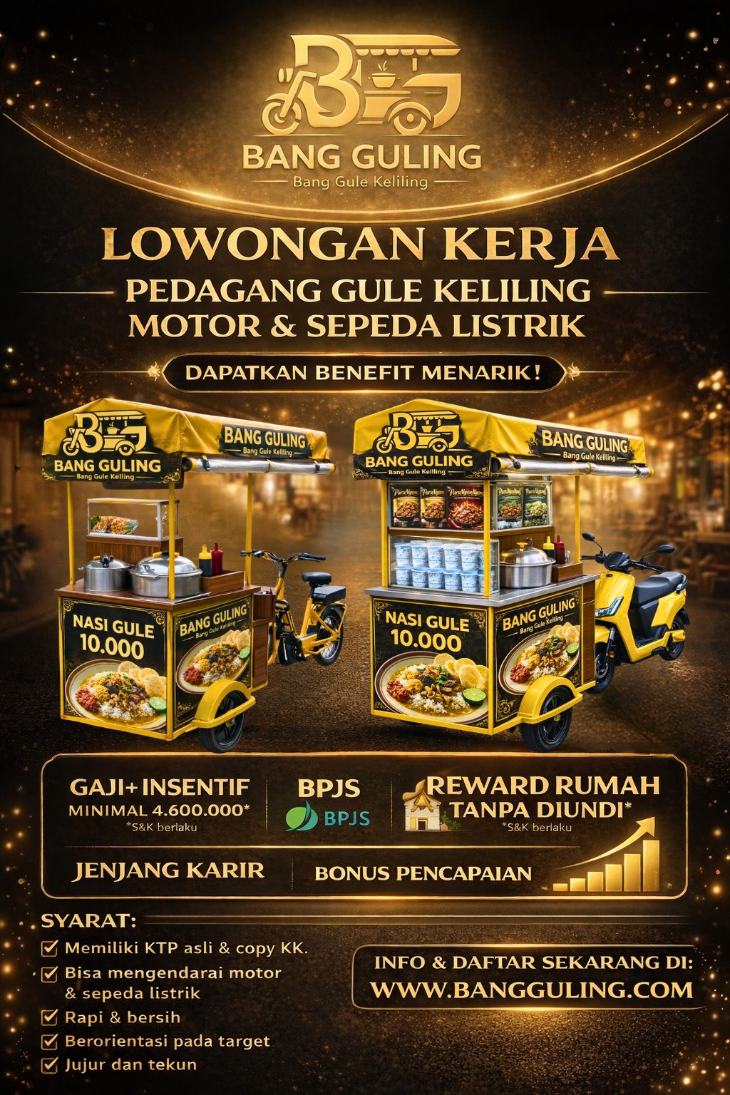 Selain Kemitraan Kami juga membuka kesempatan kerja sebagai Pedagang Bang Guling.